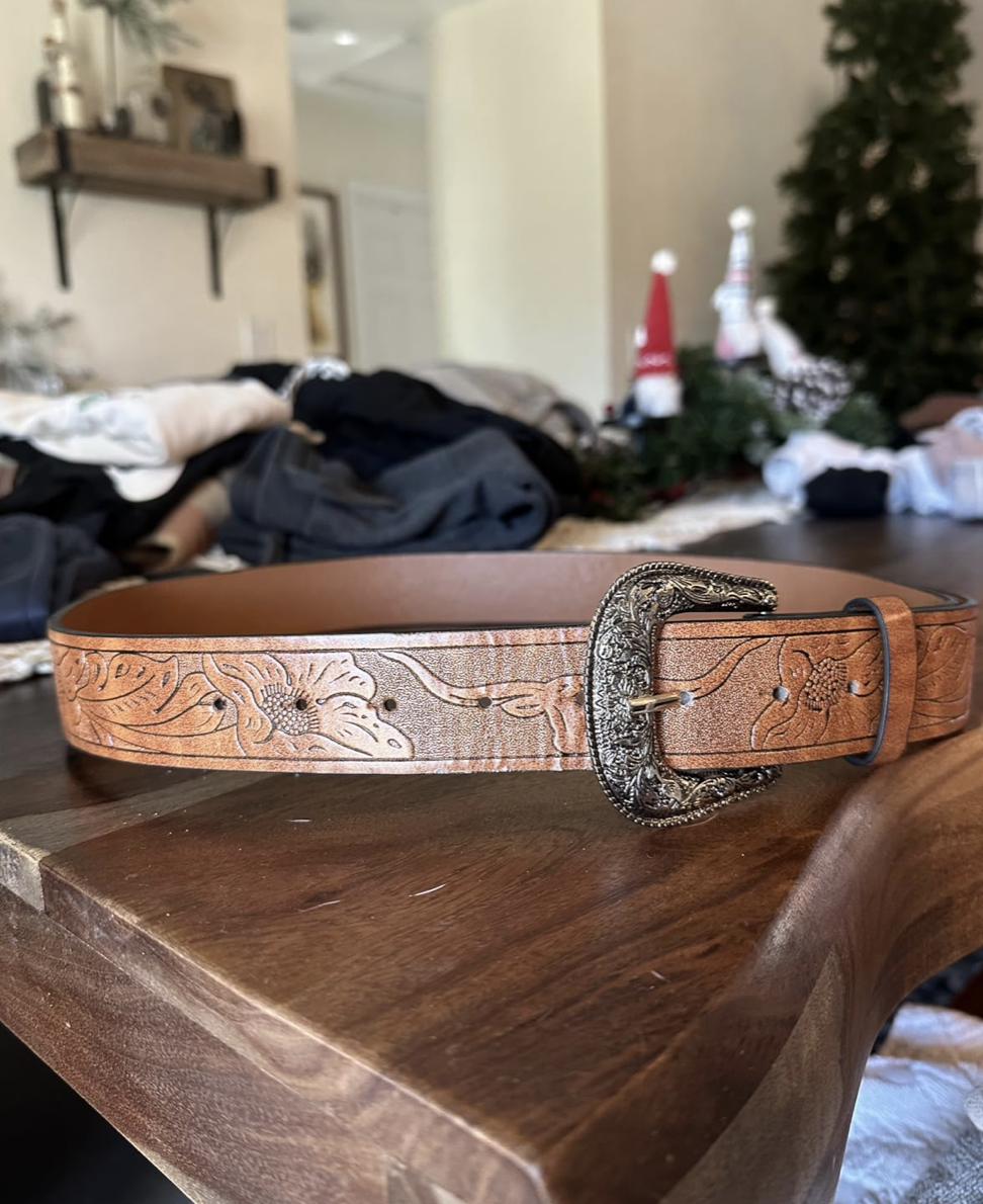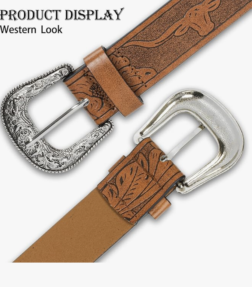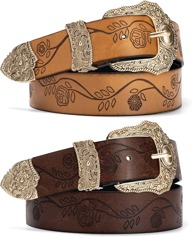 The 2 Pack Cowgirl Belts for Women are great value. Engraved buckles look authentic—silver finish shines nicely. Both belts fit true to size—adjustable for different outfits. One for jeans, one for dresses—versatile for casual or concert looks. Leather is durable—no cracking after months. Comfortable and lightweight. Perfect for sharing or matching with friends. These belts bring Western style without breaking the bank—highly recommend!